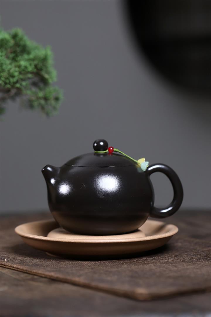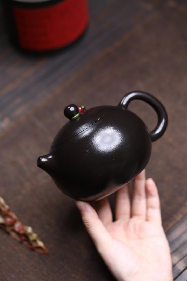 原礦黑料石黃河豚西施磁吸茶壺POT7666