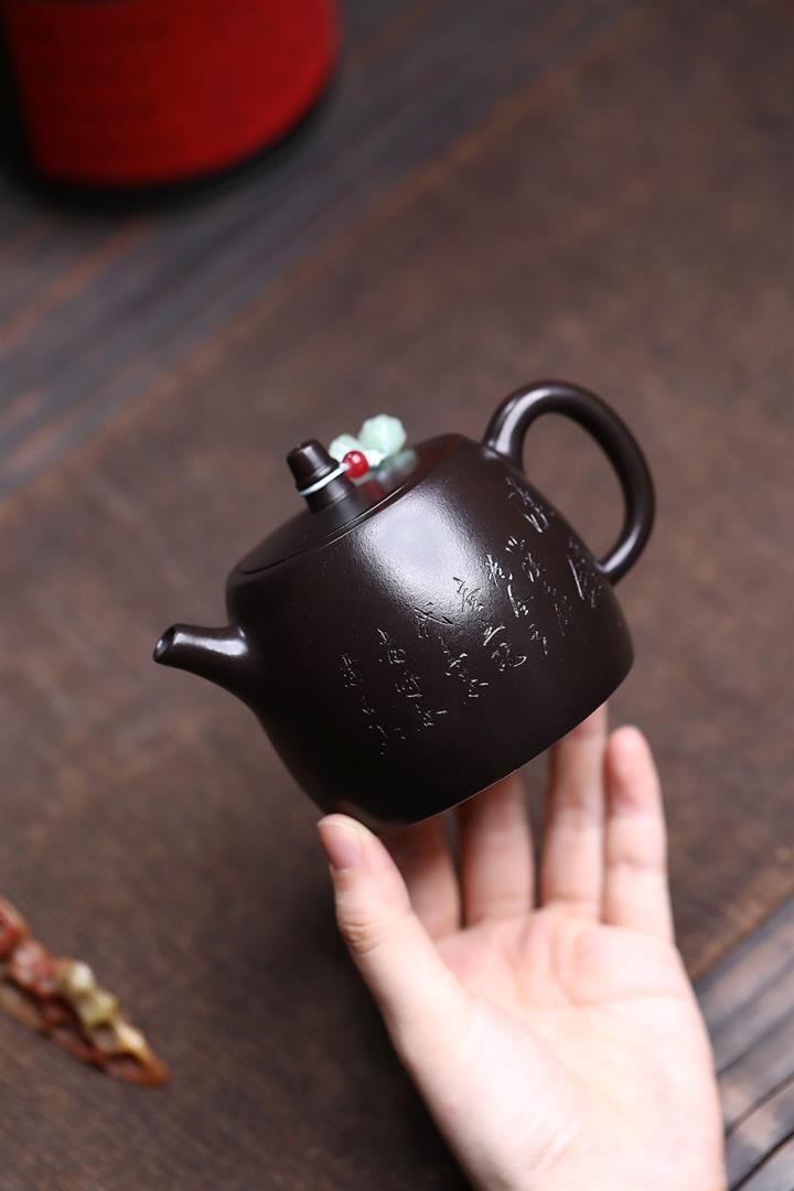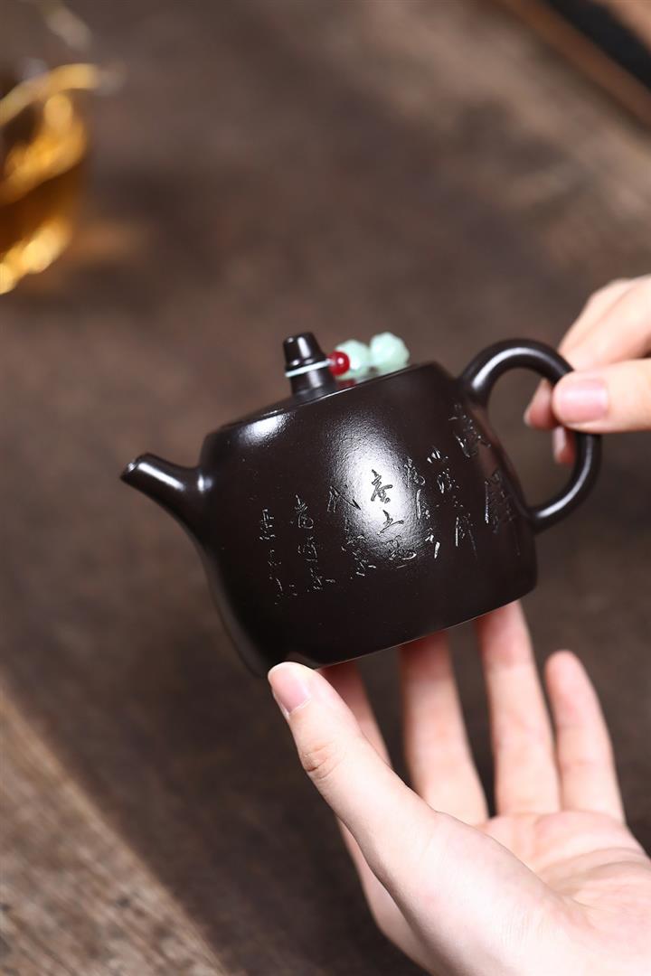 紫砂使用越久,壺身色澤越發光亮照人,氣韻溫雅。紫砂壺長久使用器身會因撫摸擦拭,變得越發溫潤光澤!
