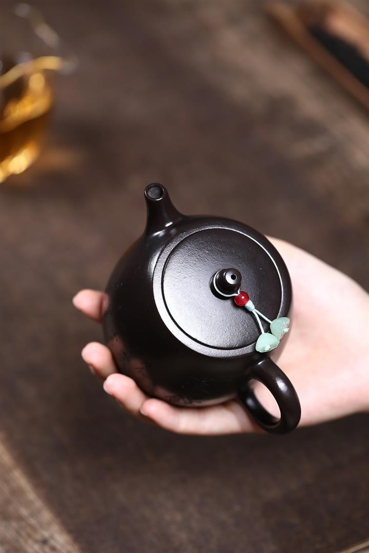 原礦黑料石黃磁吸報春茶壺POT7664