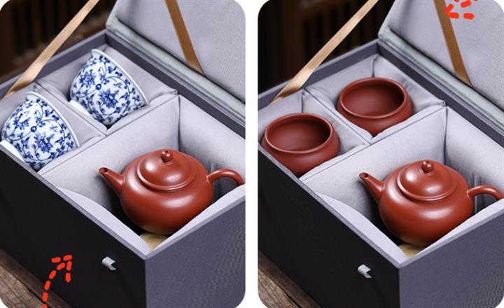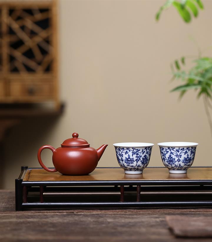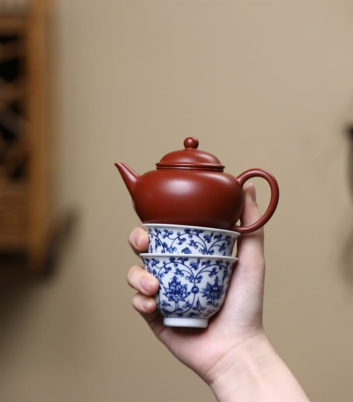 【尺寸】壺約130ml,紅泥單杯約50ml,青花瓷杯約70ml