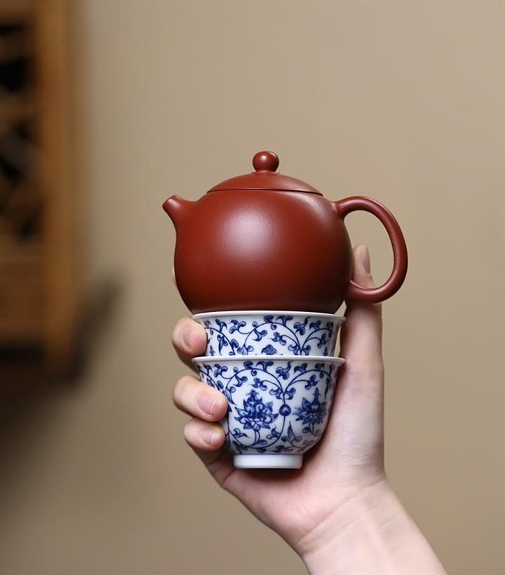 【尺寸】壺約190ml,紅泥單杯約50ml,青花瓷杯約70ml