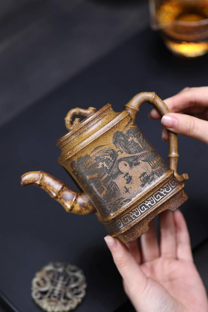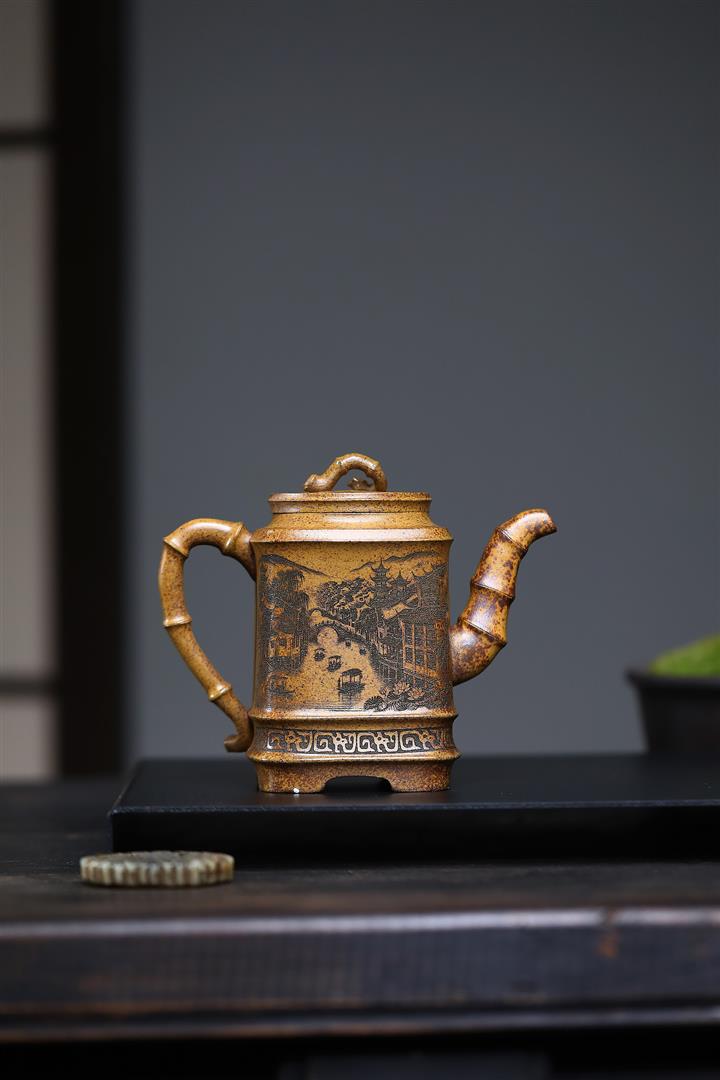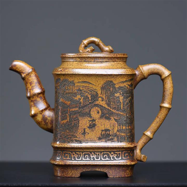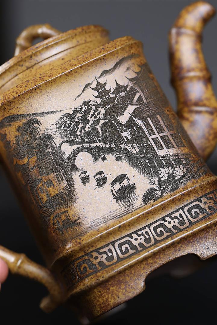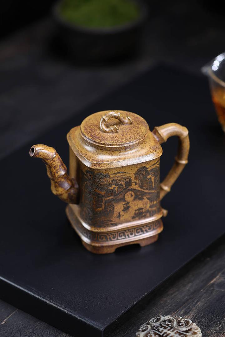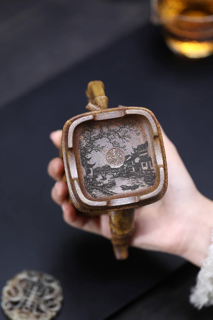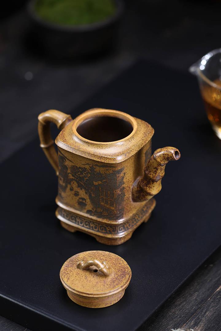 原礦龍骨金砂憶江南方圓茶壺POT7652