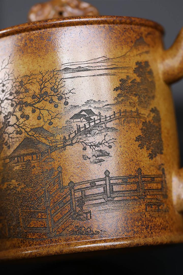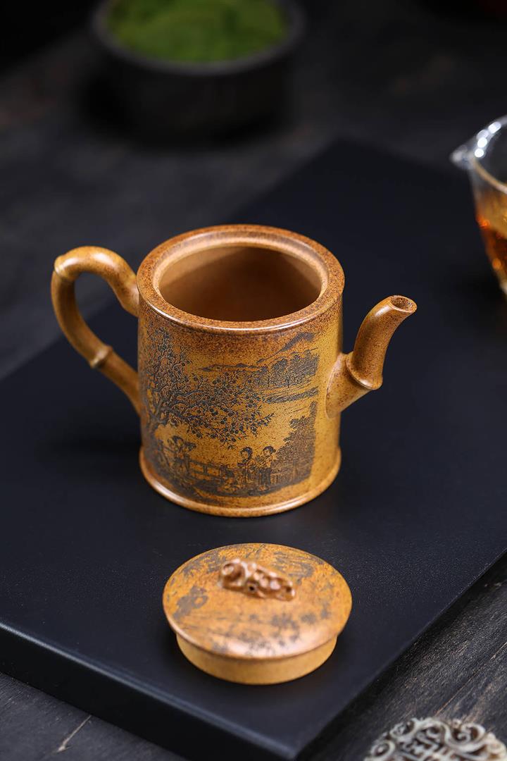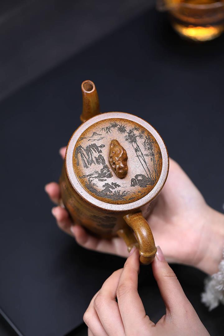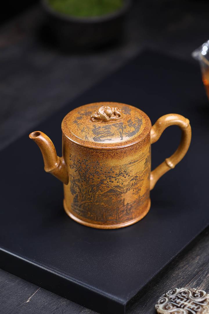 原礦龍骨金砂憶江南方圓茶壺POT7652