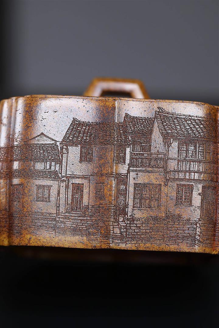 原礦龍骨金砂憶江南方圓茶壺POT7652