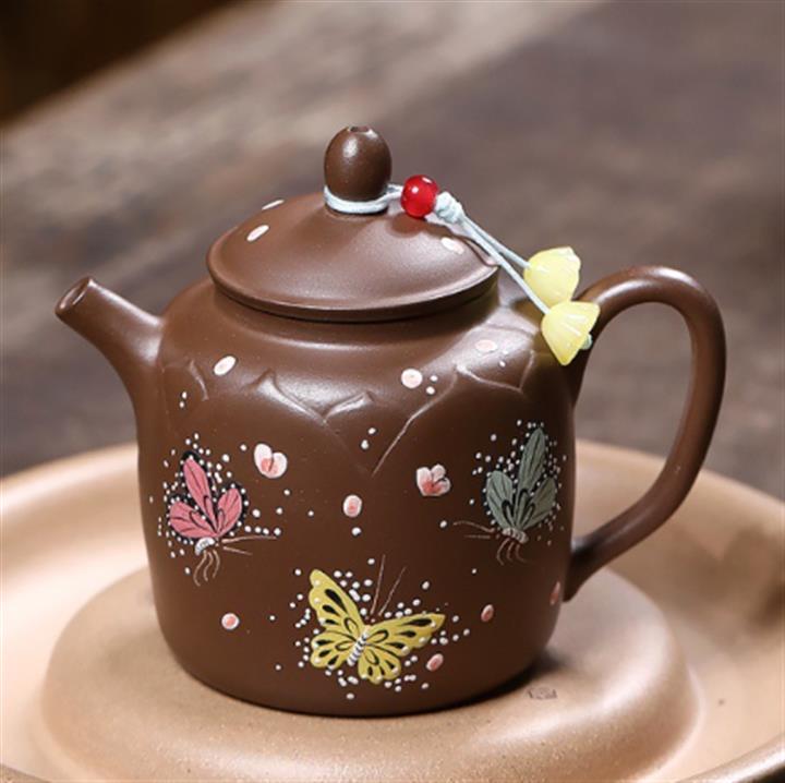 原礦赤金朱泥蝴蝶玉瓶茶壺POT7643