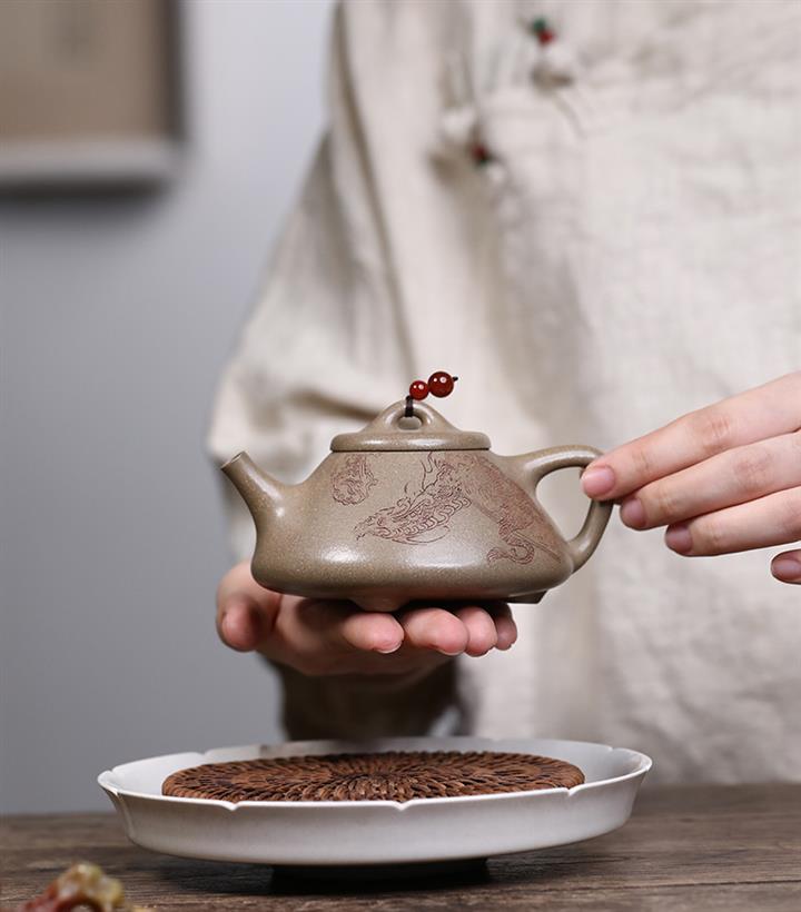 紫砂使用越久,壺身色澤越發光亮照人,氣韻溫雅。紫砂壺長久使用器身會因撫摸擦拭,變得越發溫潤光澤!