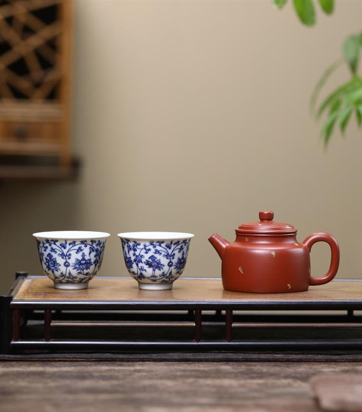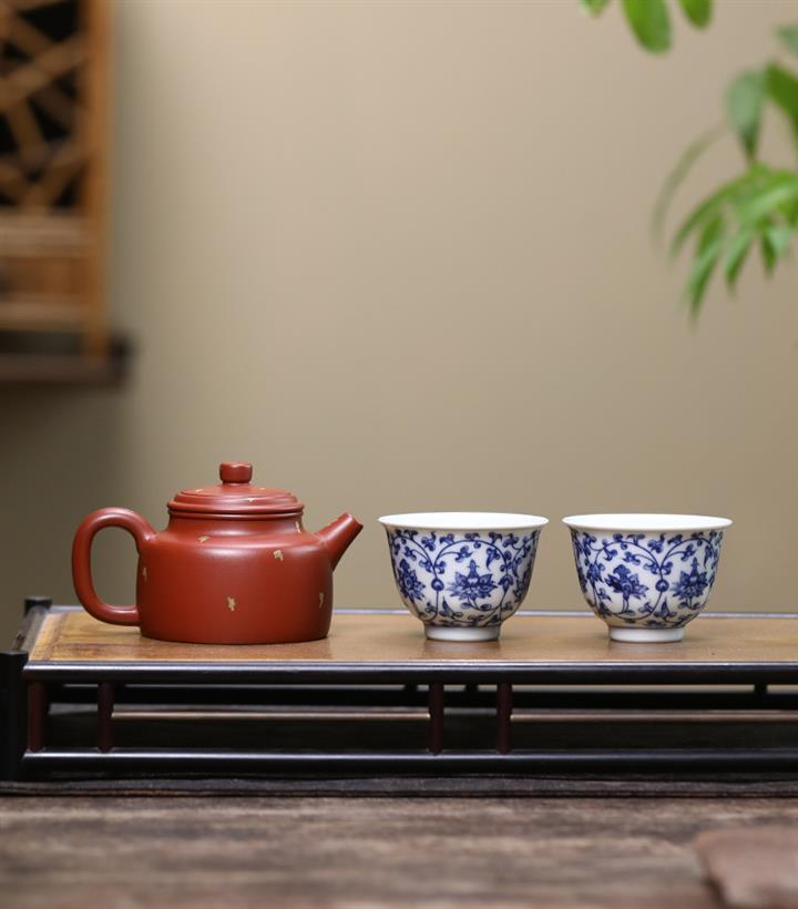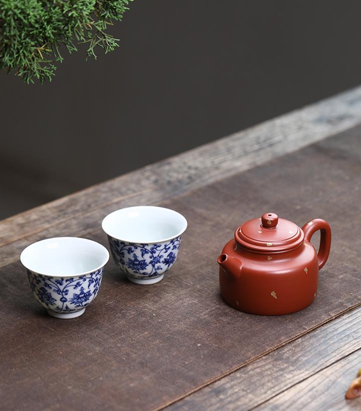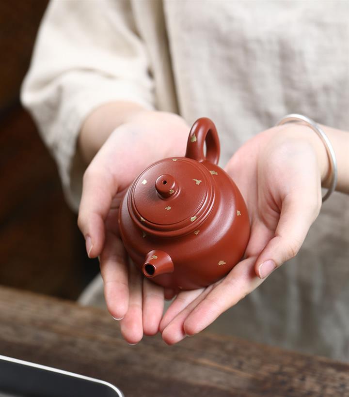 朱泥灑金德鐘壹壺兩杯套裝POT7635