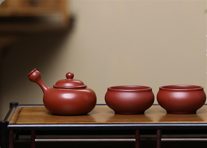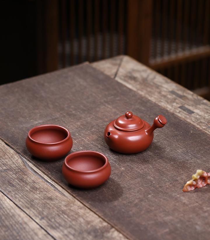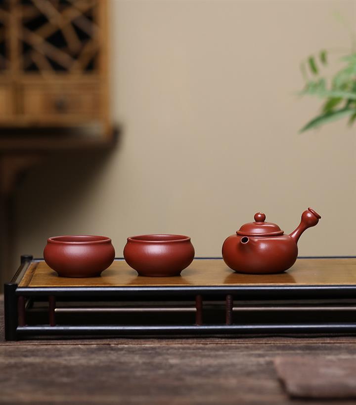 原礦朱泥側把唐羽壺壹壺兩杯套裝POT7632