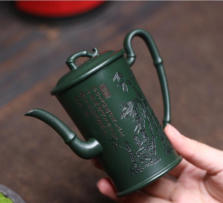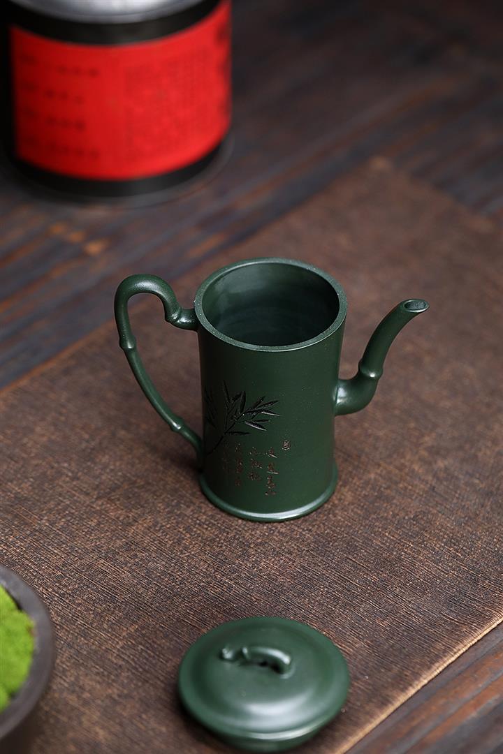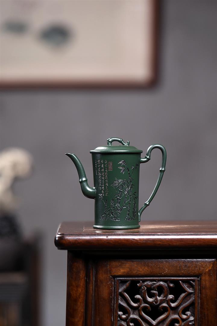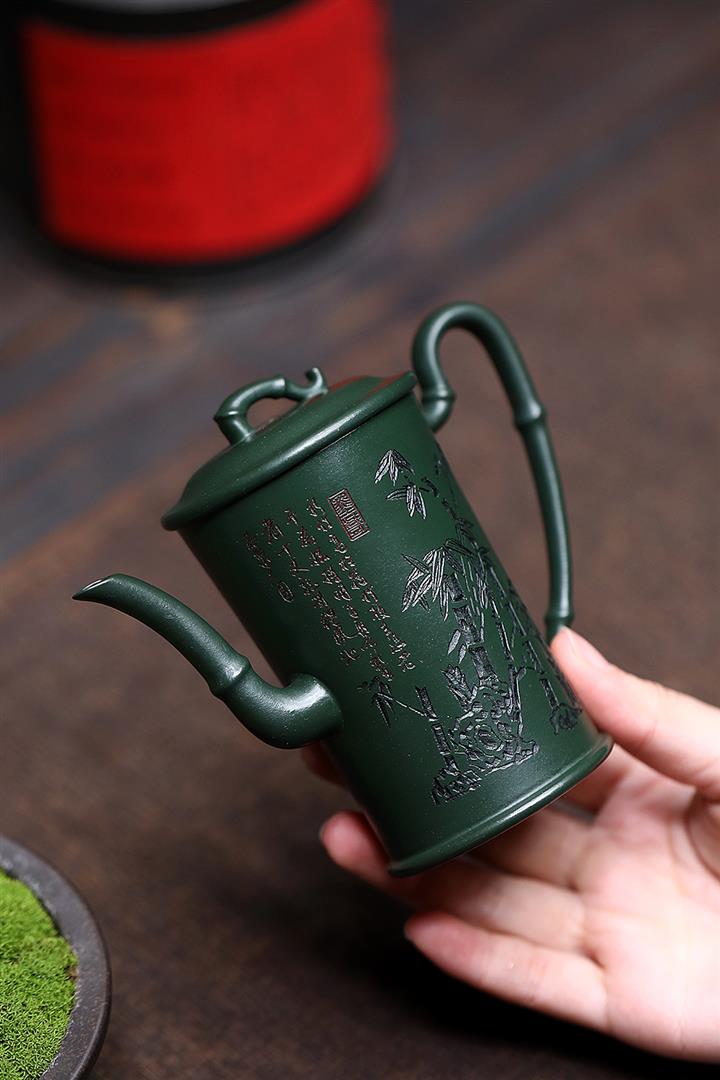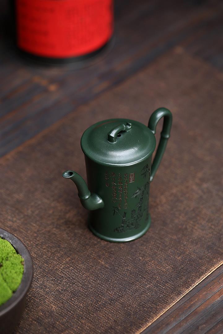 原礦綠泥刻繪山景線瓢茶壺POT7624