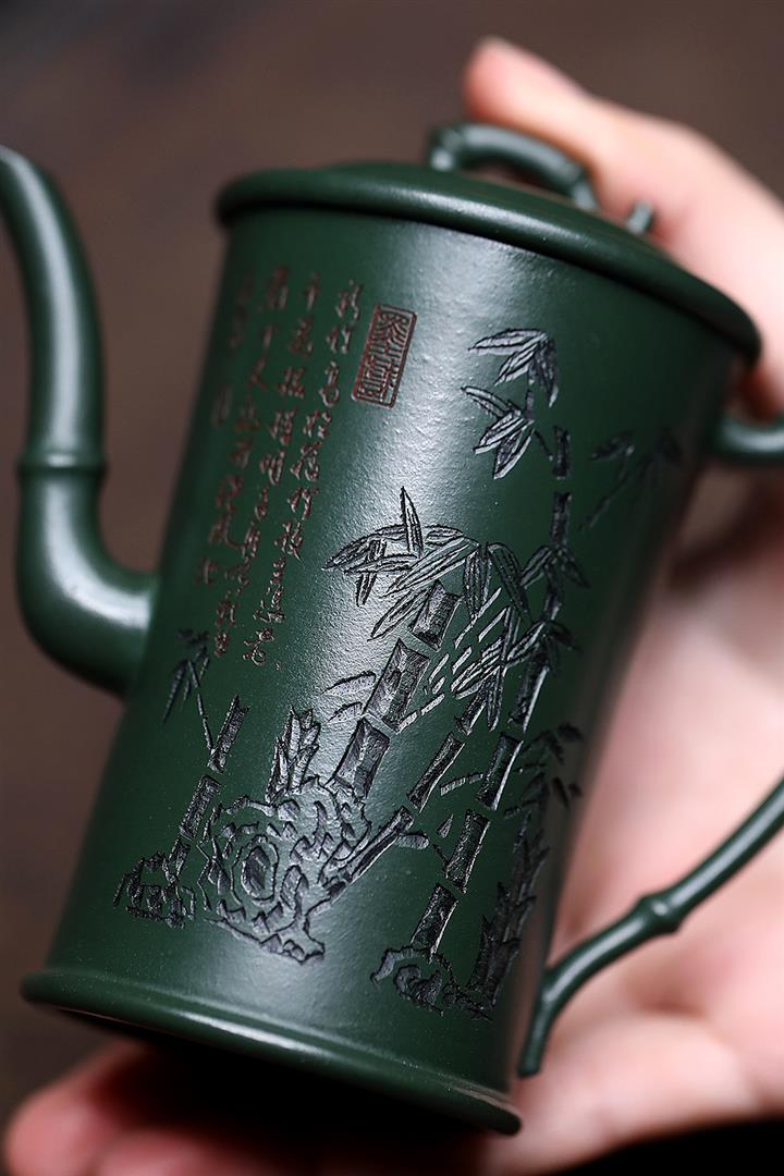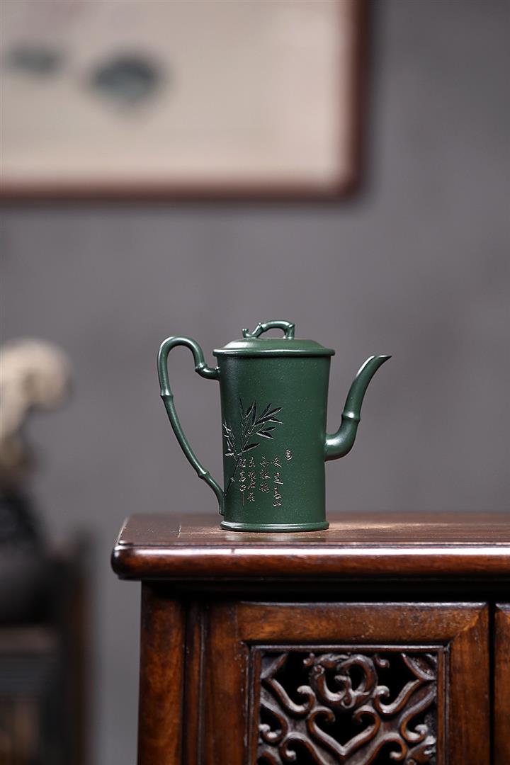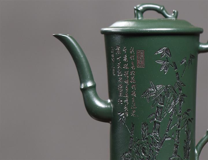 原礦綠泥刻繪花鳥宮燈茶壺POT7623