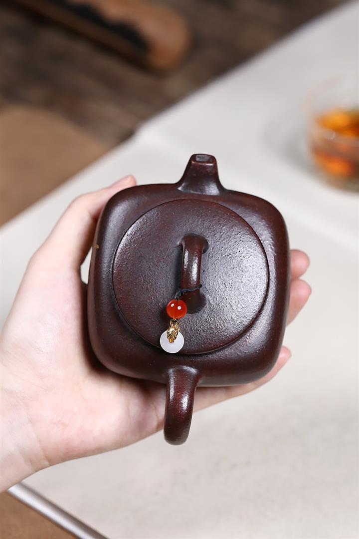 原礦大紅袍朱泥四方如意茶壺POT7618