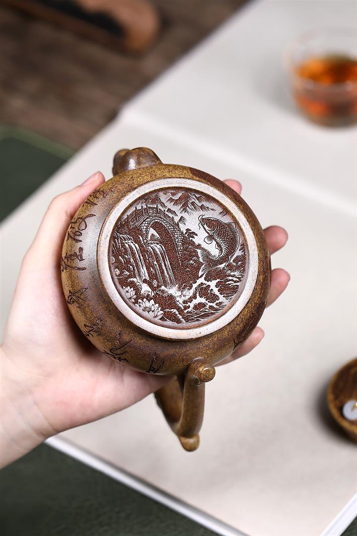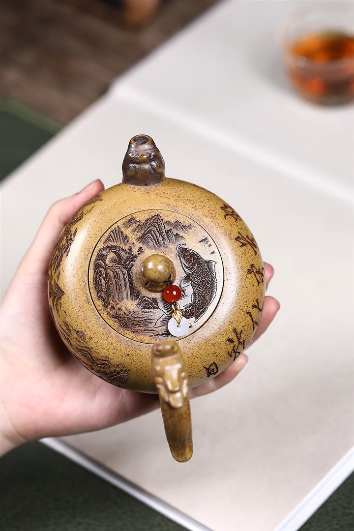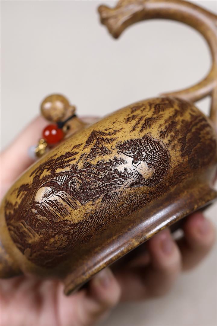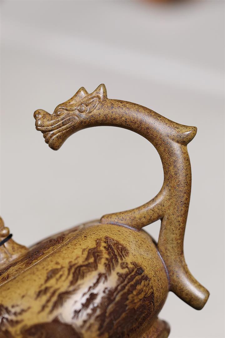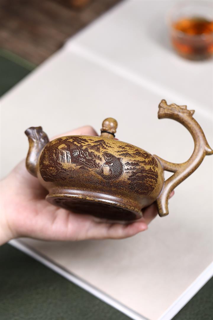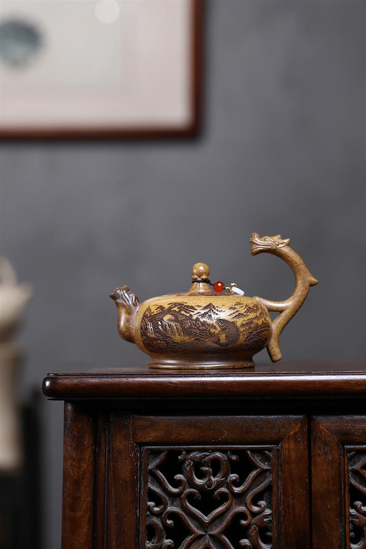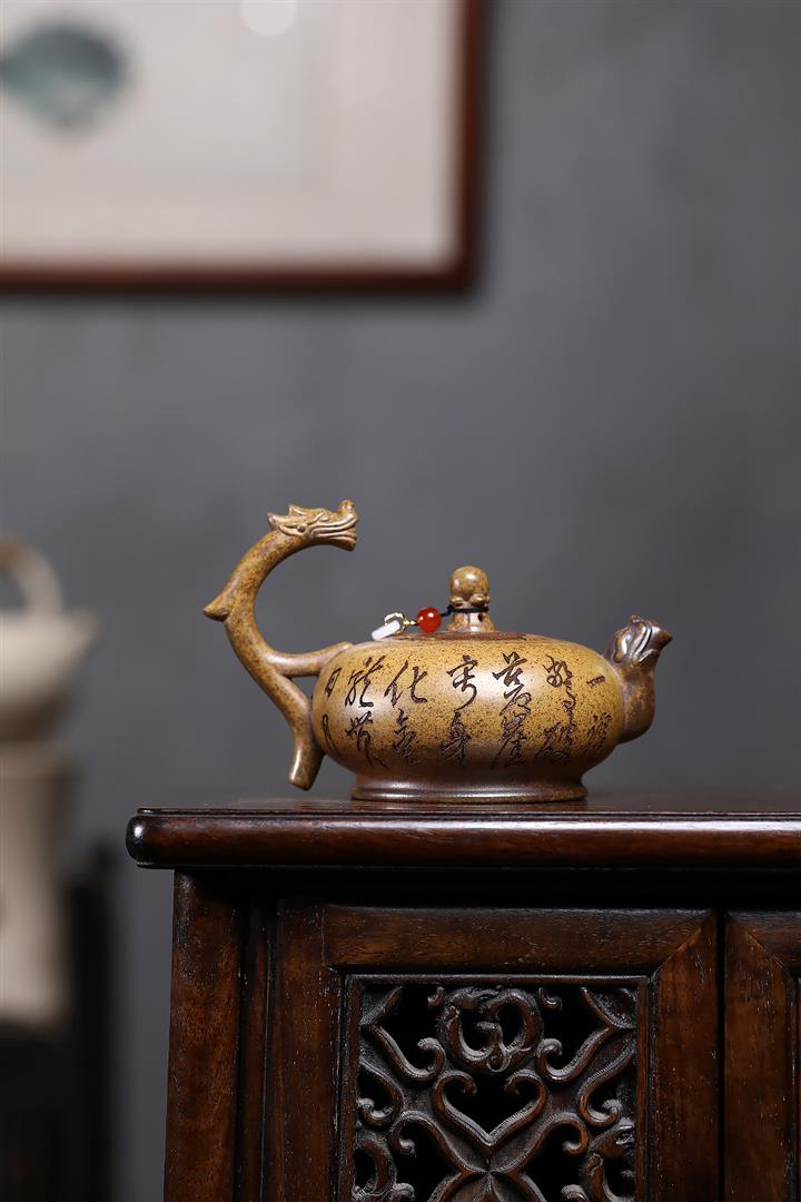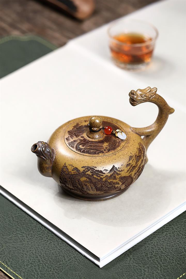原礦石黃臥虎藏龍周盤茶壺POT7616