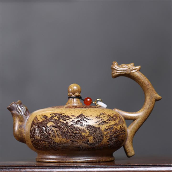 原礦高溫段泥躍龍門提梁茶壺POT7621