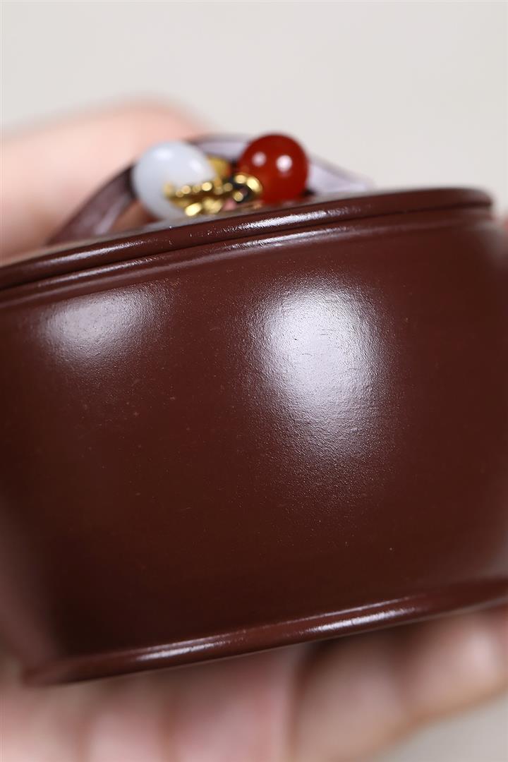 【作品介紹】作品深蘊內涵,做工細致典雅,型用完備,器形端莊穩重,比例協調,結構嚴謹,泥色潤澤。