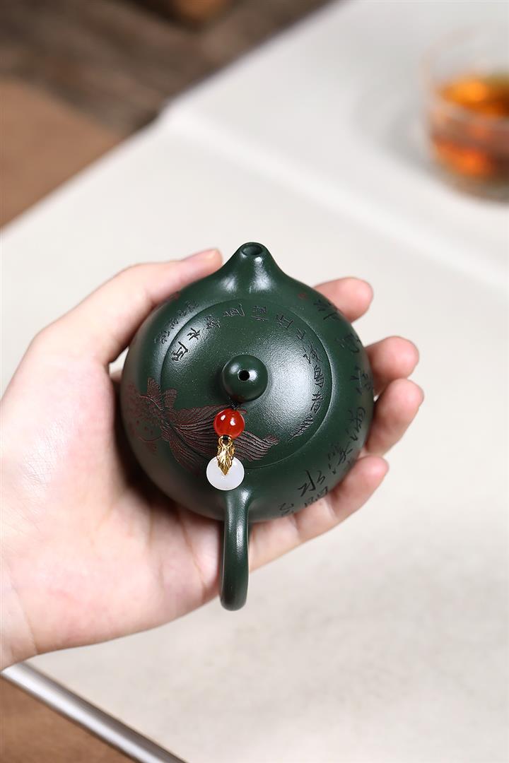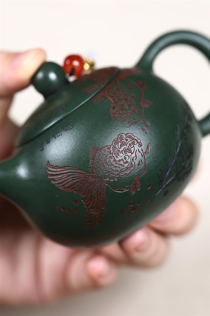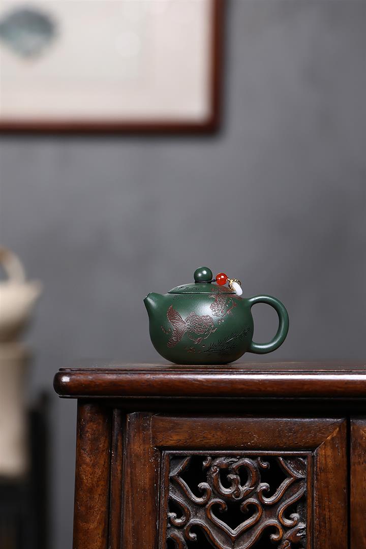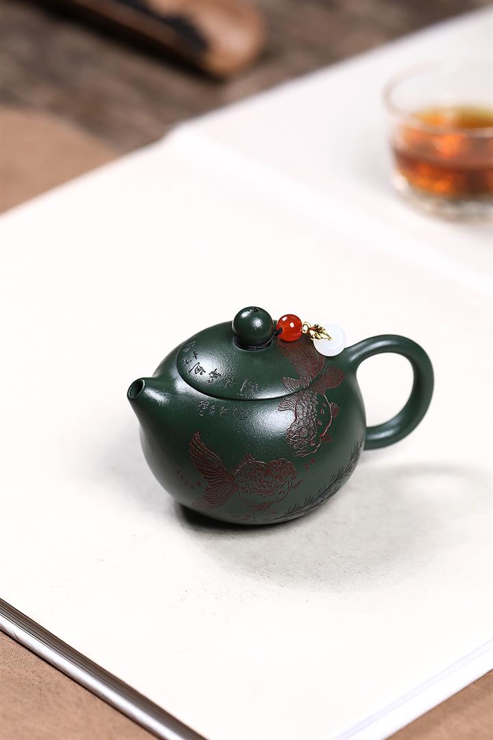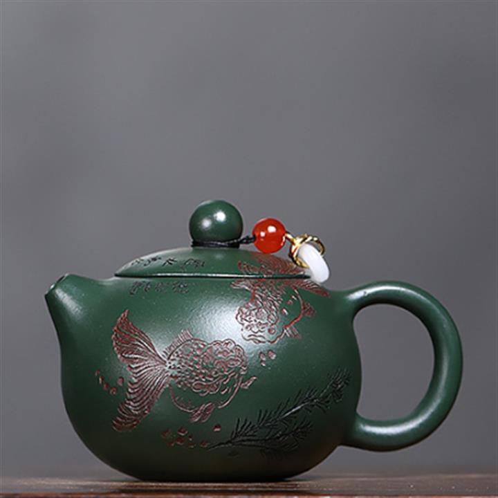原礦綠泥雙魚西施茶壺POT7601