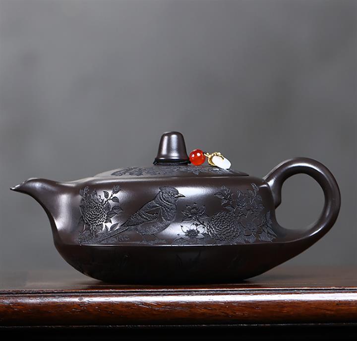 紫砂使用越久,壺身色澤越發光亮照人,氣韻溫雅。紫砂壺長久使用器身會因撫摸擦拭,變得越發溫潤光澤!
