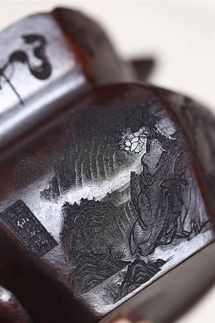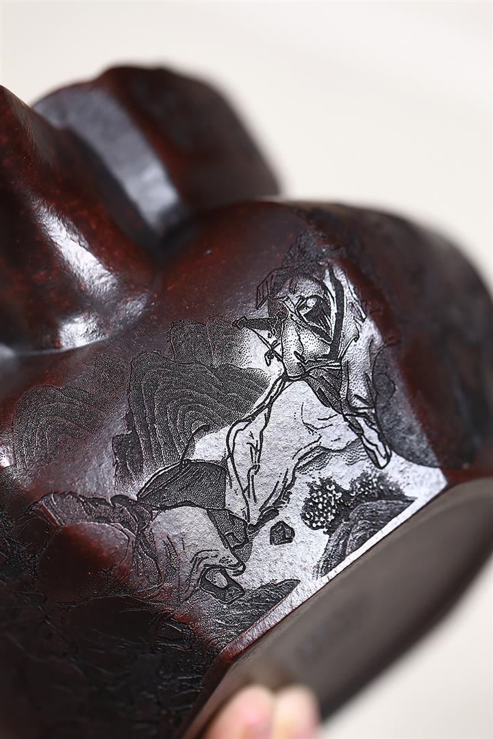 原礦玄鐵石黃刻繪覓香苑曲壺POT7592