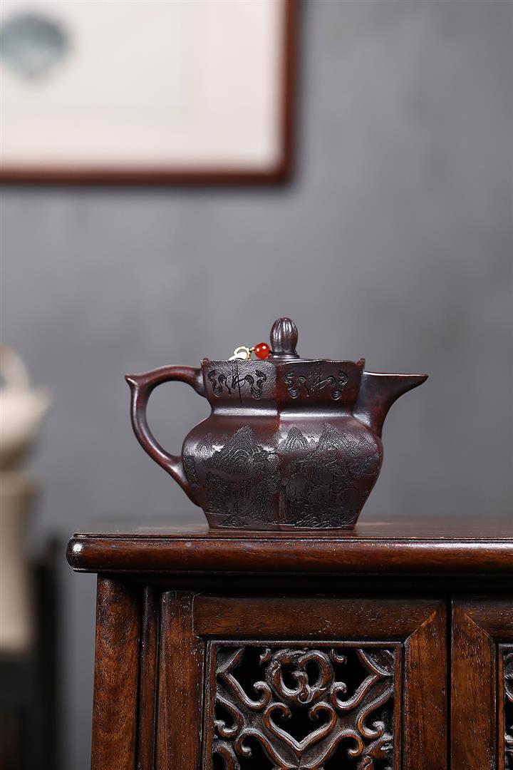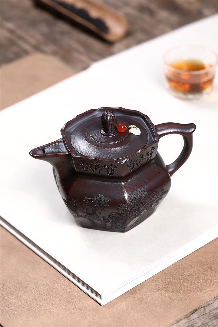 原礦鐵血紅砂八仙獻瑞茶壺POT7597