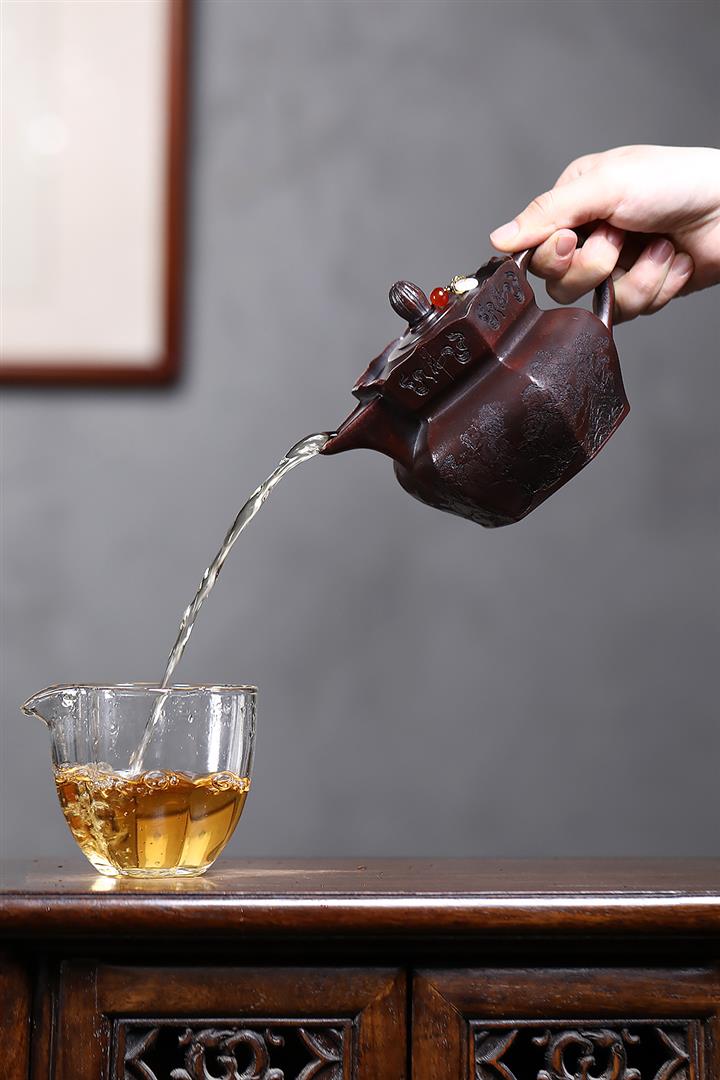 紫砂使用越久,壺身色澤越發光亮照人,氣韻溫雅。紫砂壺長久使用器身會因撫摸擦拭,變得越發溫潤光澤!