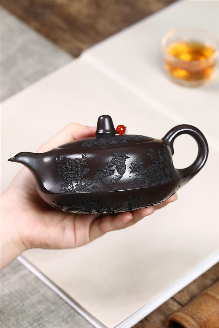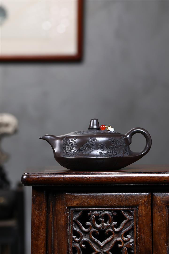 紫砂使用越久,壺身色澤越發光亮照人,氣韻溫雅。紫砂壺長久使用器身會因撫摸擦拭,變得越發溫潤光澤!