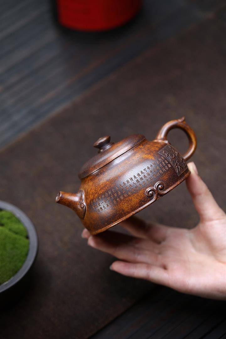 紫砂使用越久,壺身色澤越發光亮照人,氣韻溫雅。紫砂壺長久使用器身會因撫摸擦拭,變得越發溫潤光澤!