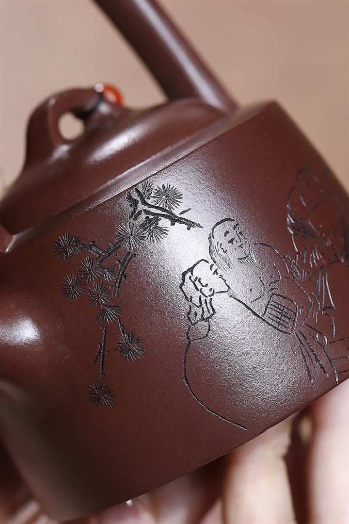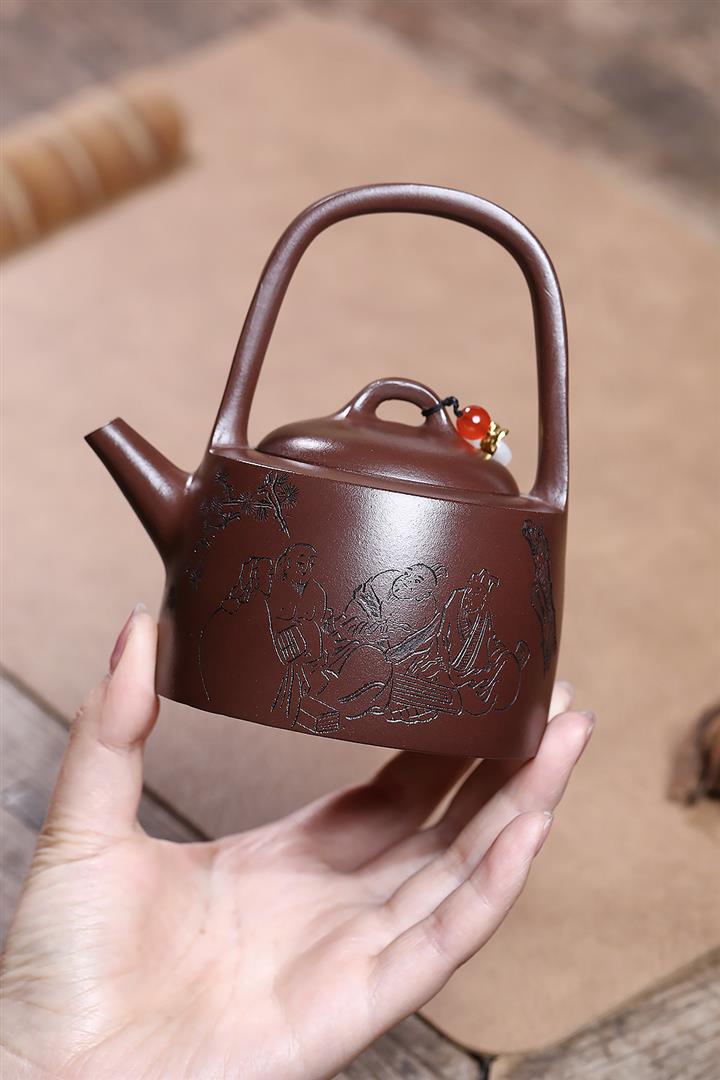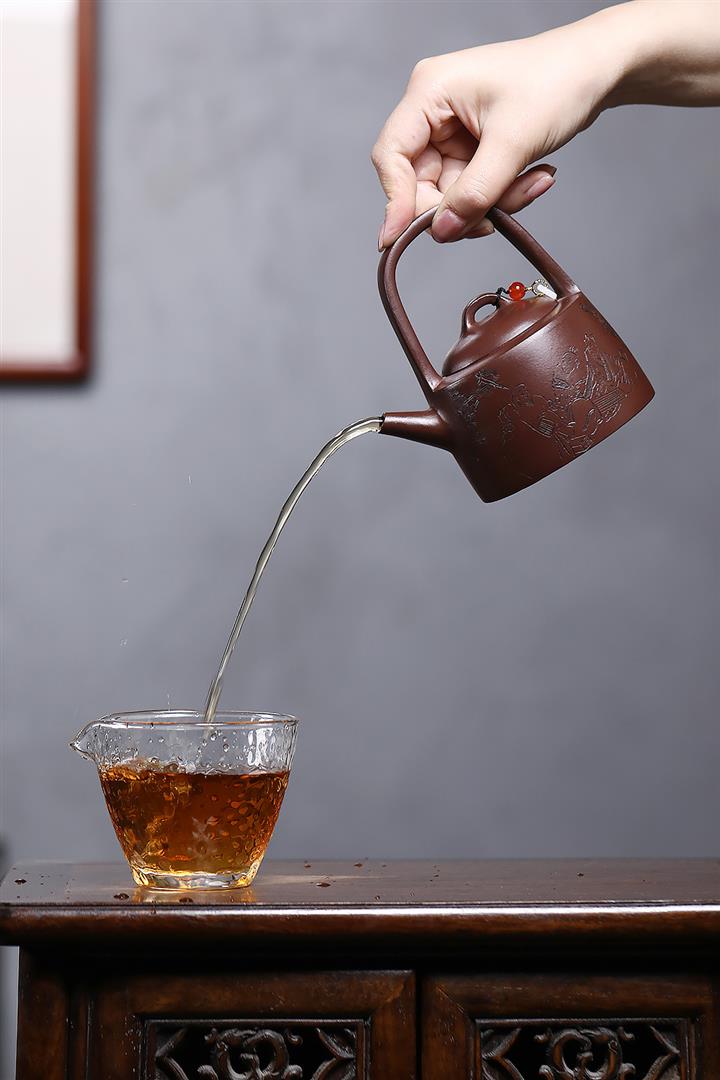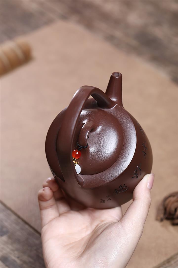 紫砂使用越久,壺身色澤越發光亮照人,氣韻溫雅。紫砂壺長久使用器身會因撫摸擦拭,變得越發溫潤光澤!