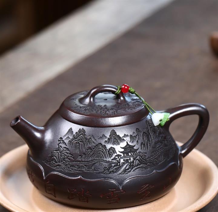 原礦墨綠泥如意山水漢瓦茶壺POT7577
