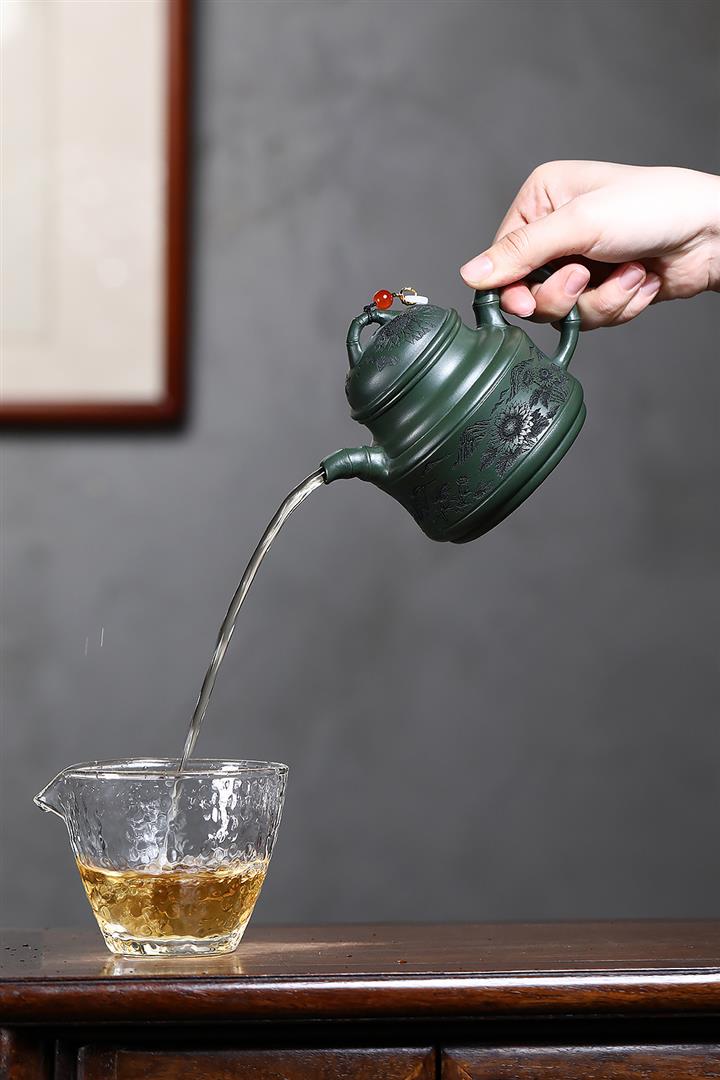 紫砂使用越久,壺身色澤越發光亮照人,氣韻溫雅。紫砂壺長久使用器身會因撫摸擦拭,變得越發溫潤光澤!