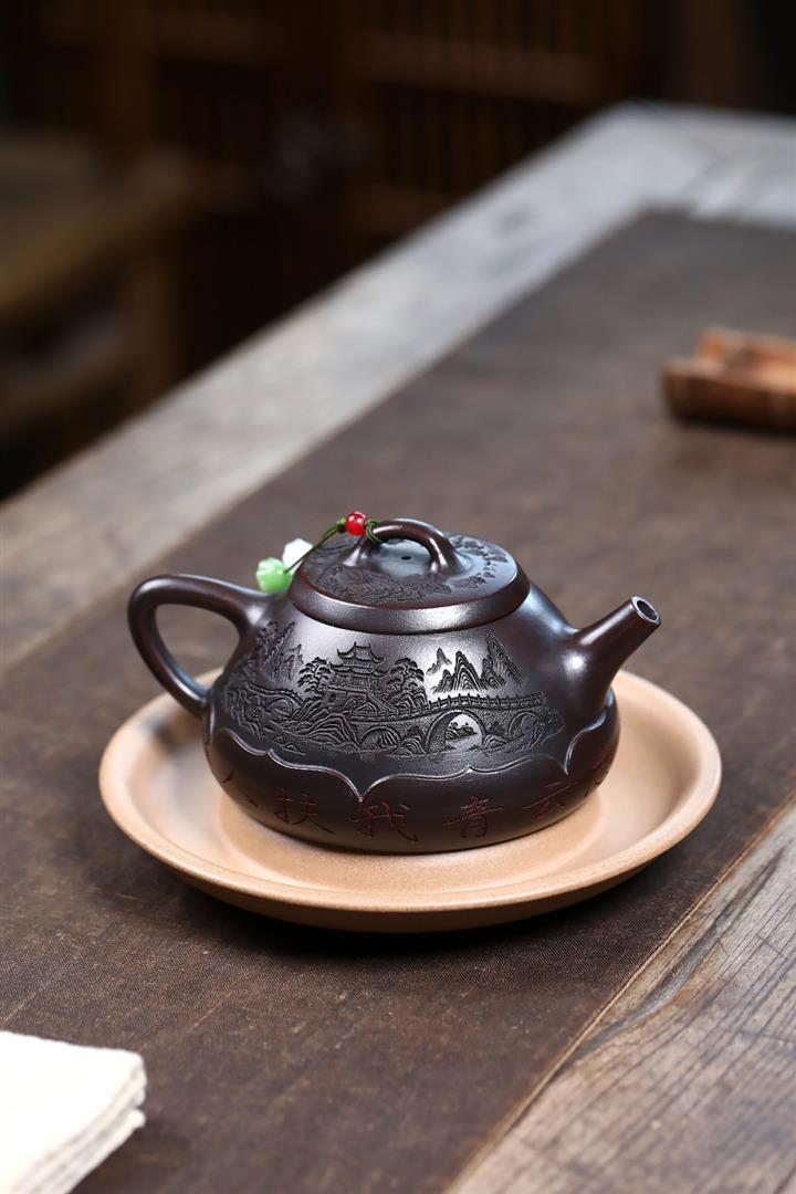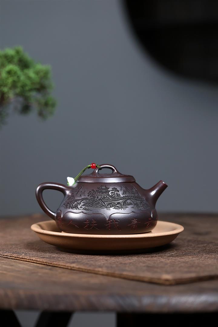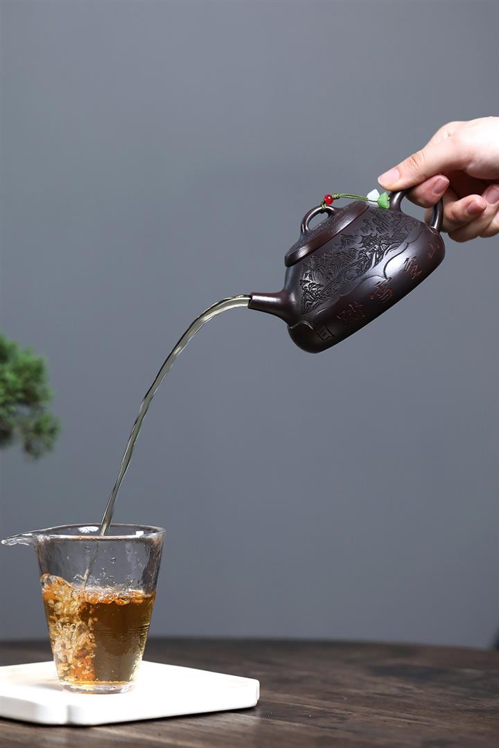 紫砂使用越久,壺身色澤越發光亮照人,氣韻溫雅。紫砂壺長久使用器身會因撫摸擦拭,變得越發溫潤光澤!