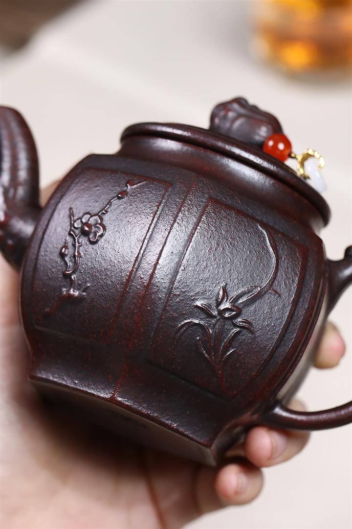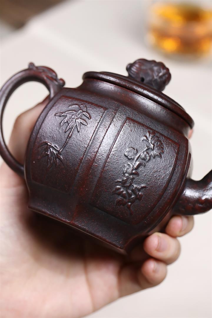 原礦赤龍血砂魚趣六方宮燈茶壺POT7555