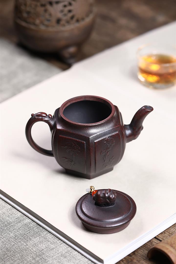 原礦鐵血紅砂六方宮燈茶壺POT7563