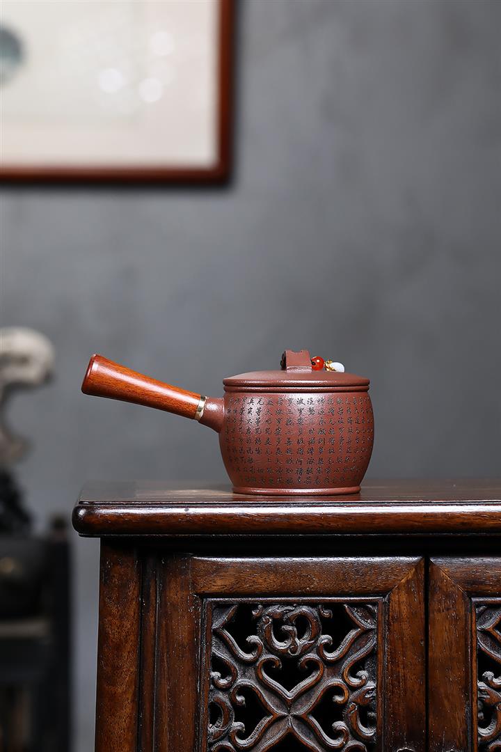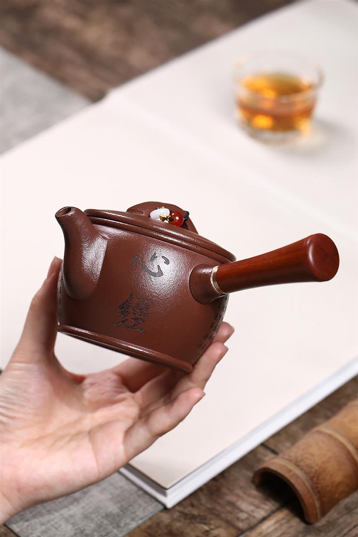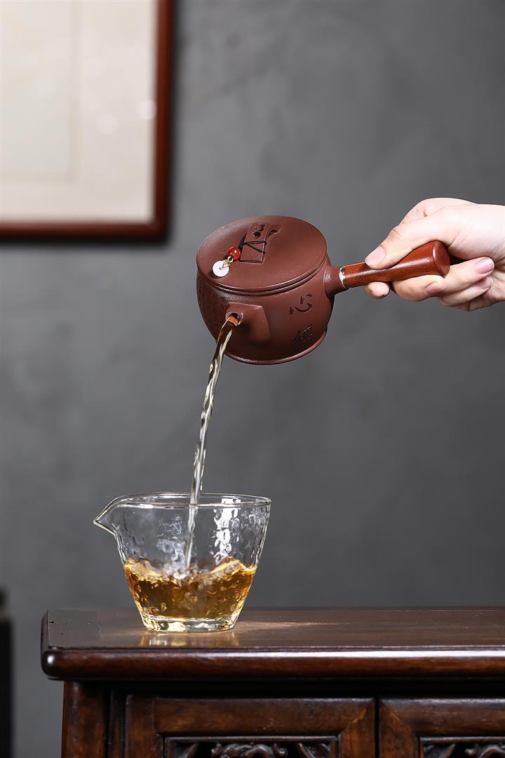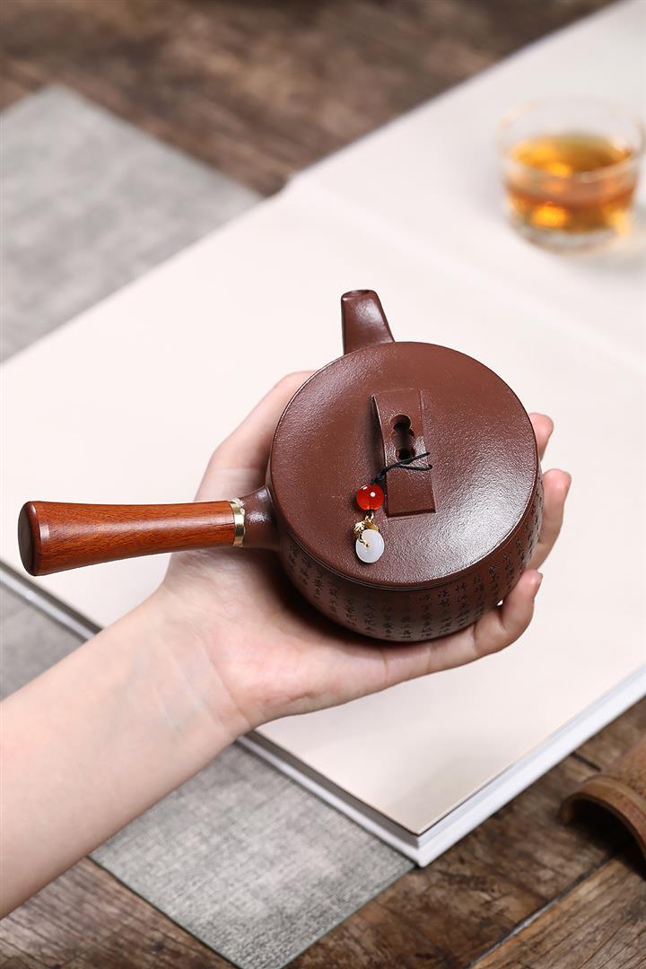 紫砂使用越久,壺身色澤越發光亮照人,氣韻溫雅。紫砂壺長久使用器身會因撫摸擦拭,變得越發溫潤光澤!