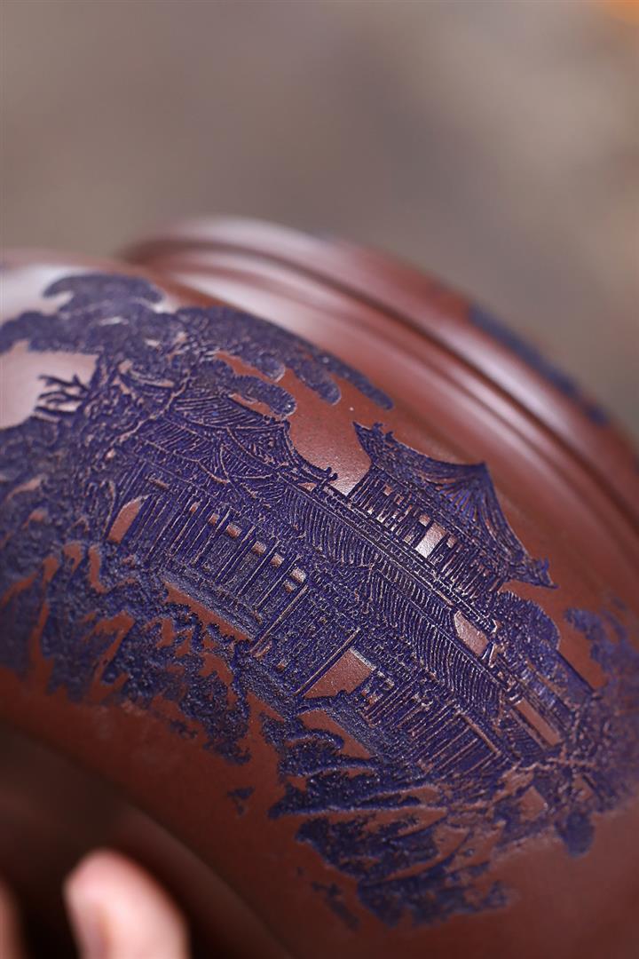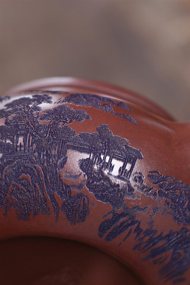 【作品介紹】作品深蘊內涵,做工細致典雅,型用完備,器形端莊穩重,比例協調,結構嚴謹,泥色潤澤。