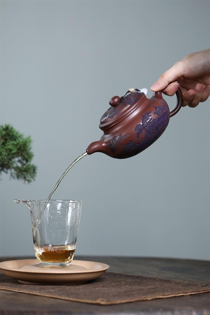 紫砂使用越久,壺身色澤越發光亮照人,氣韻溫雅。紫砂壺長久使用器身會因撫摸擦拭,變得越發溫潤光澤!