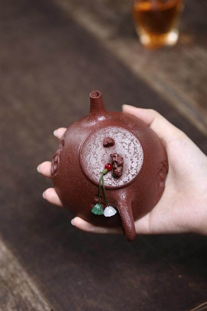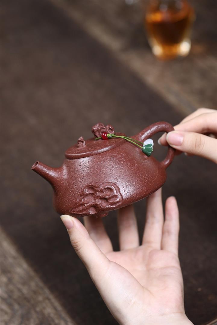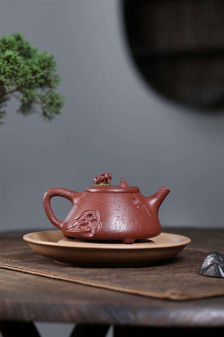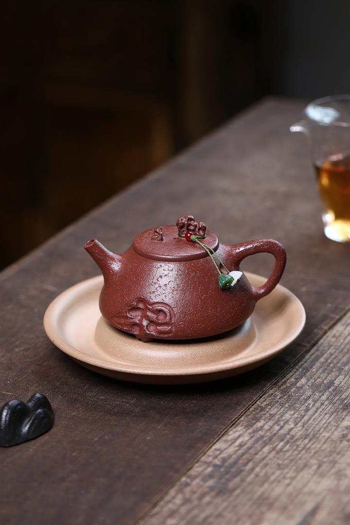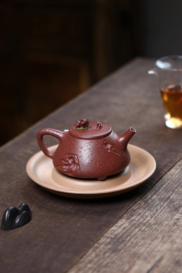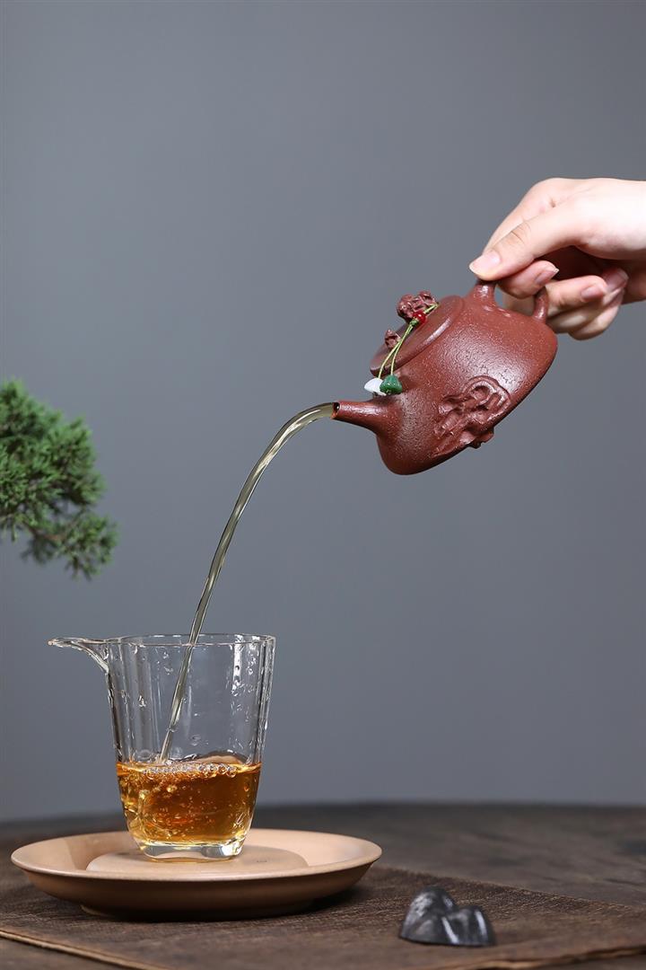 【泥料特點】砂土氣重,似淳實農民,日久使用,漸露鋒芒,養成變化,溫潤莊重。紫砂是壹種雙重氣孔結構的多孔性材質,氣孔微細,密度高。用紫砂壺沏茶,不失原味,且香不渙散,得茶之真香真味。紫砂使用越久,壺身色澤越發光亮照人,氣韻溫雅。紫砂壺長久使用器身會因撫摸擦拭,變得越發溫潤光澤。