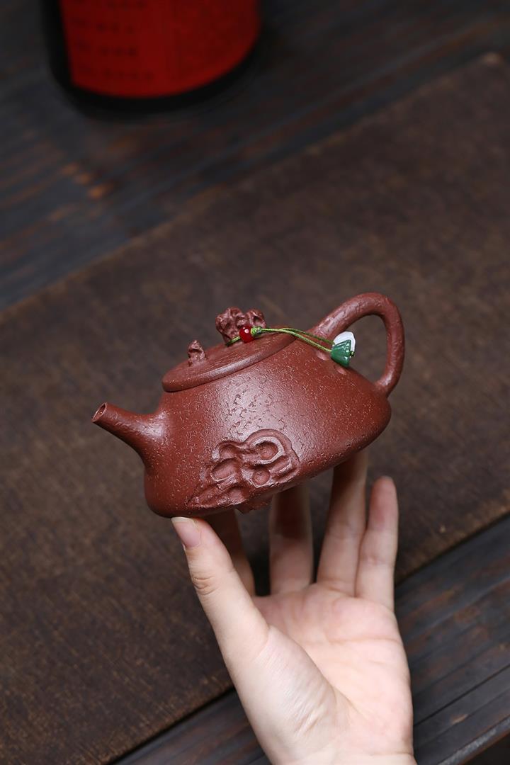 【作品介紹】此款壺形線條流暢,壺把,壺嘴,壺身壹氣呵成栩栩如生,是收藏把玩的好壺,泥料色澤古樸典雅,日久使用,漸露鋒芒,養成變化快,溫潤莊重,用其泡茶,使用的年代久,壺身就溫潤,泡出來的茶湯也就醇郁芳馨。