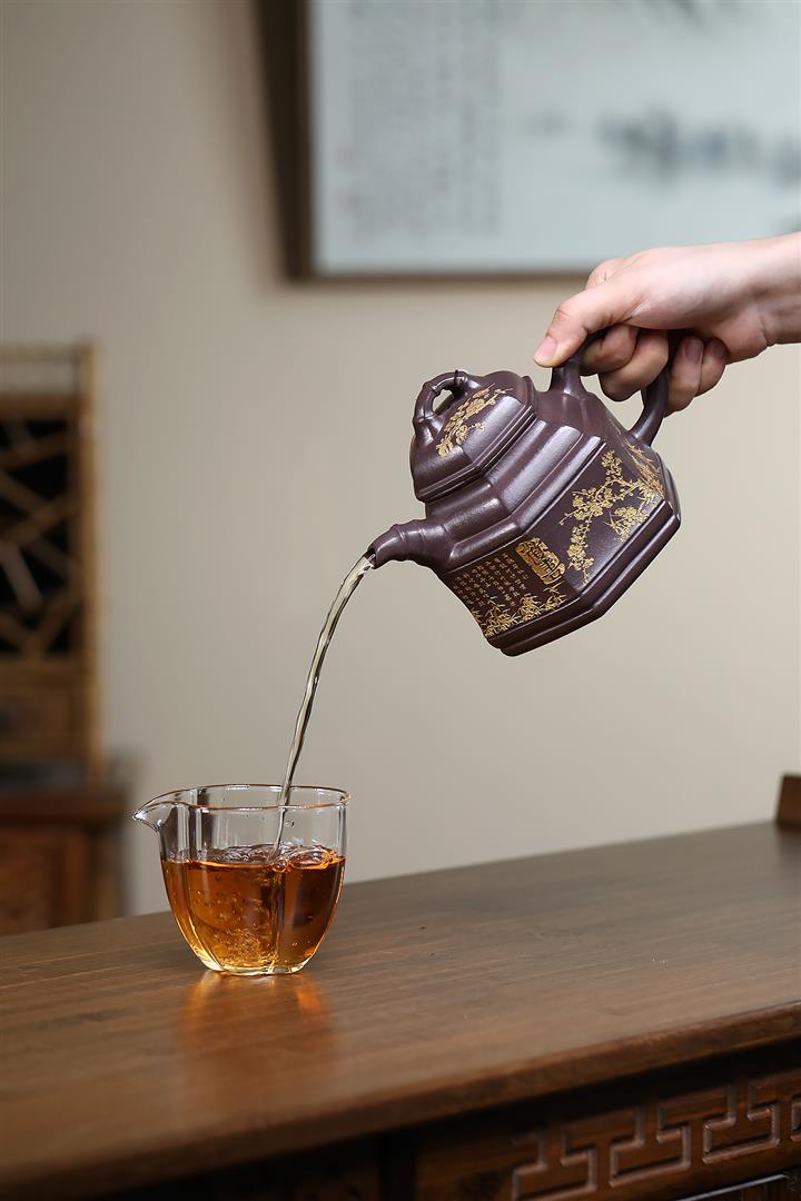 【泥料特點】砂土氣重,似淳實農民,日久使用,漸露鋒芒,養成變化,溫潤莊重。紫砂是壹種雙重氣孔結構的多孔性材質,氣孔微細,密度高。用紫砂壺沏茶,不失原味,且香不渙散,得茶之真香真味。紫砂使用越久,壺身色澤越發光亮照人,氣韻溫雅。紫砂壺長久使用器身會因撫摸擦拭,變得越發溫潤光澤。