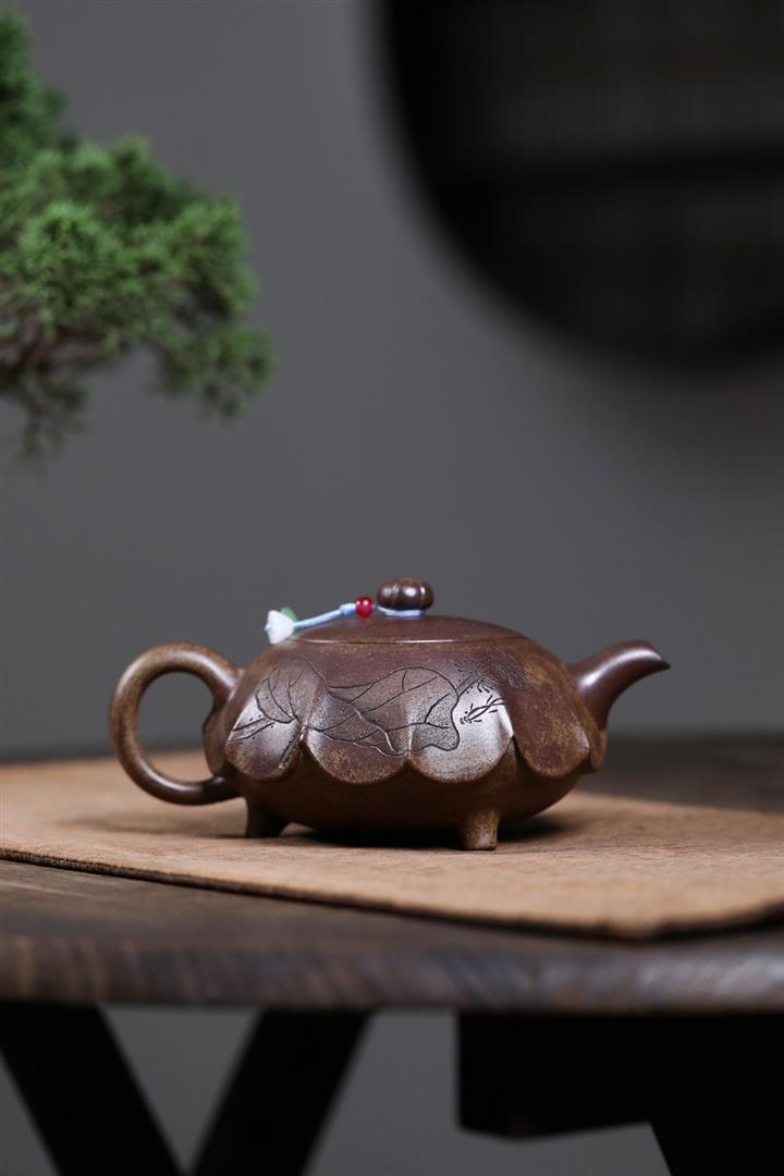 360cc原礦沈香泥柴燒高風亮節荷葉茶壺POT7927