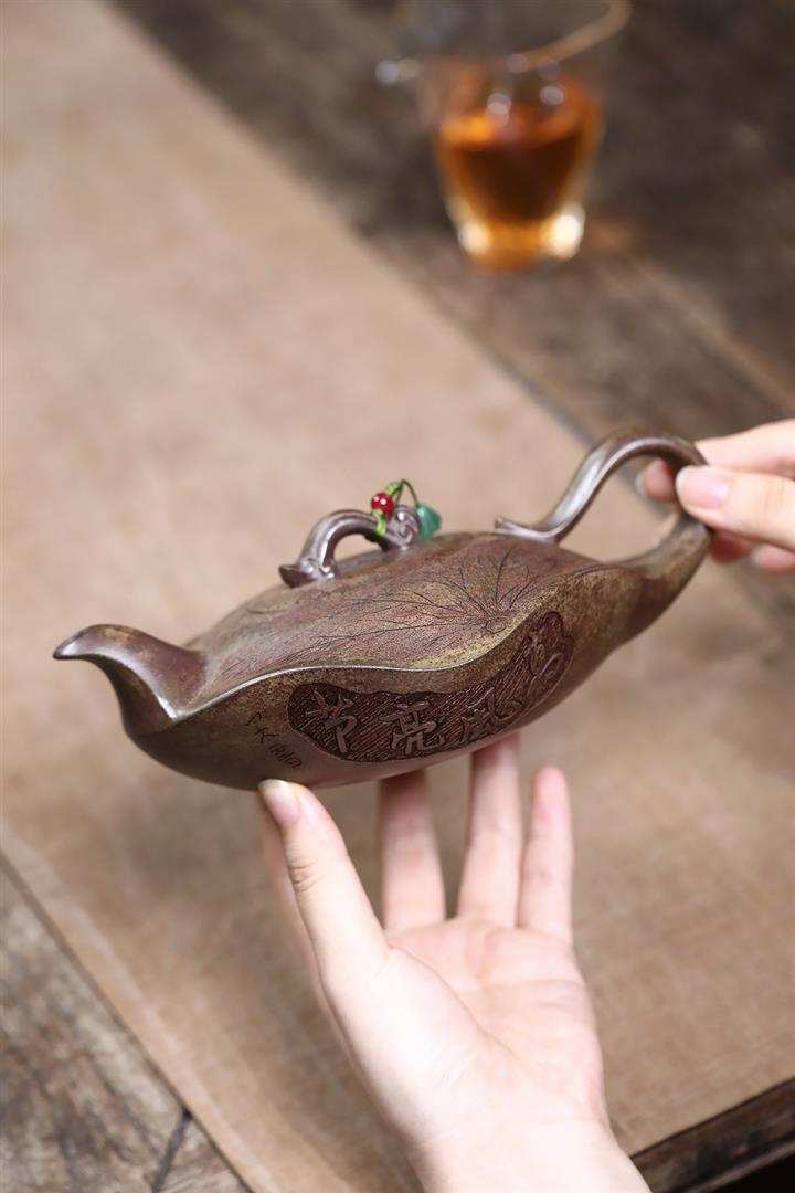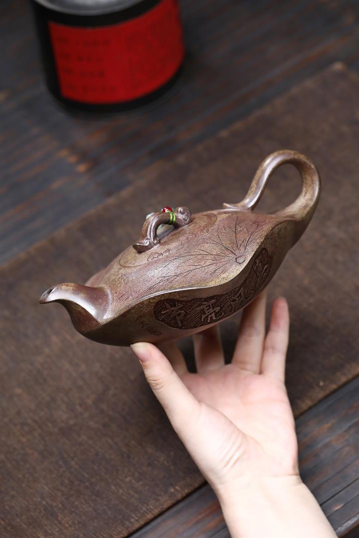 360cc原礦沈香泥柴燒高風亮節荷葉茶壺POT7927