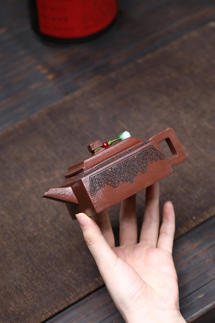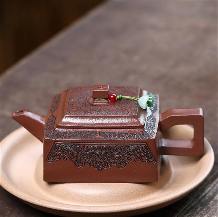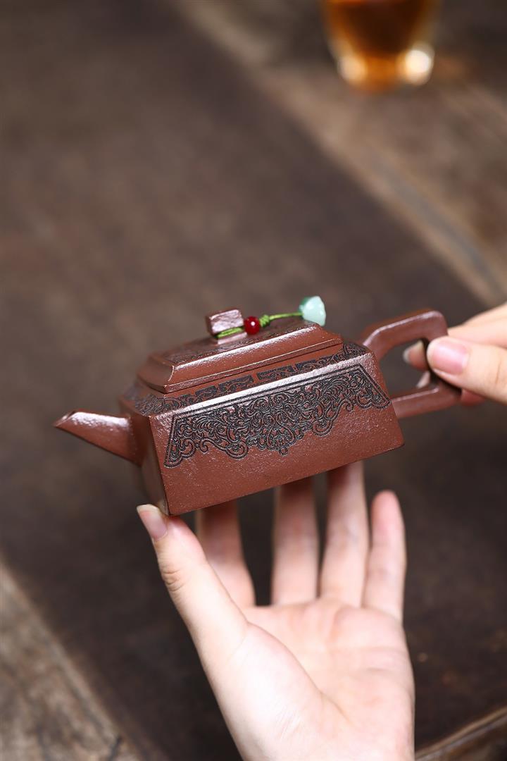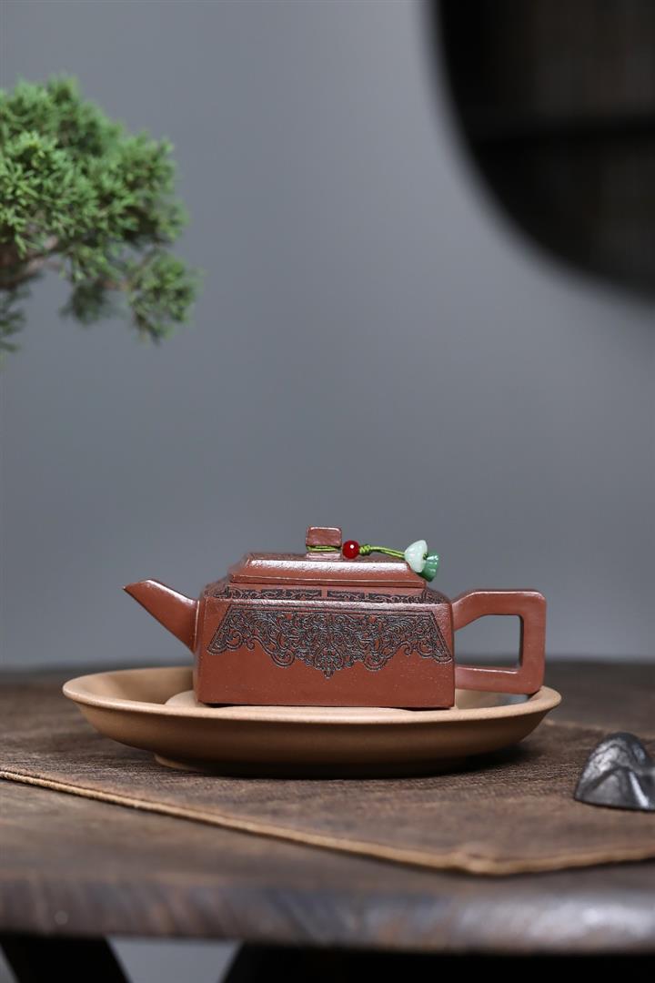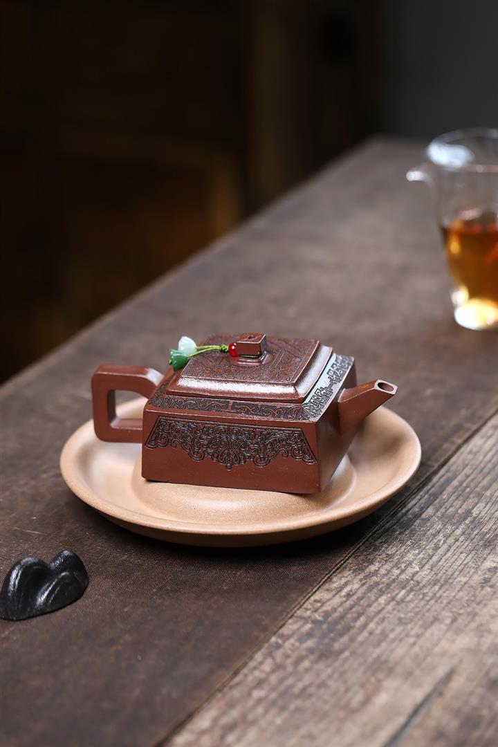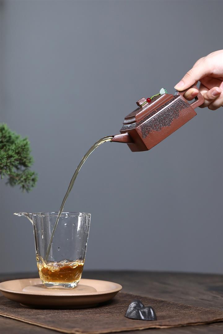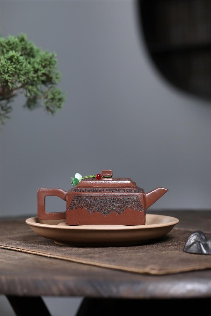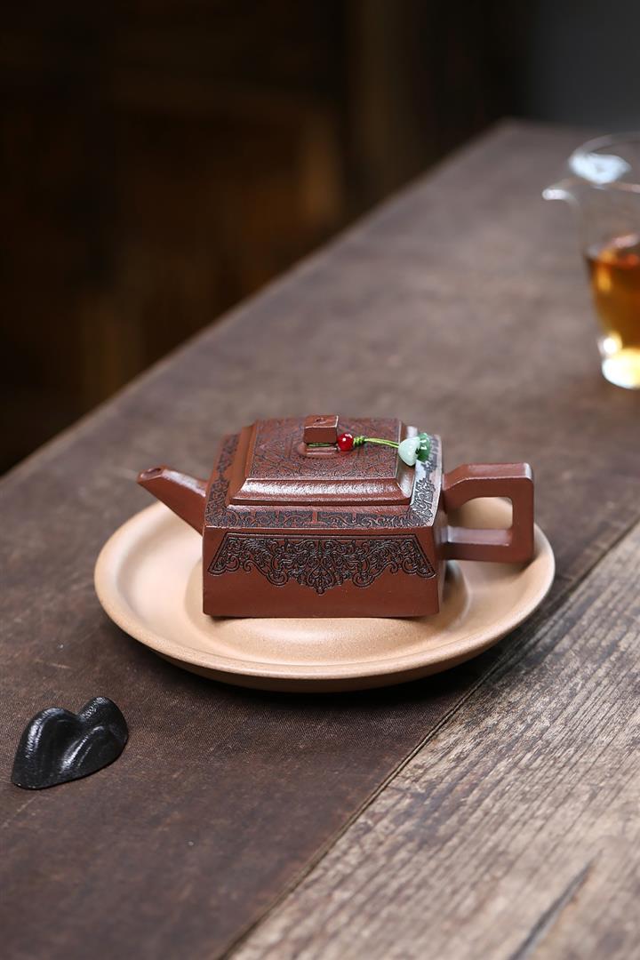 【泥料特點】砂土氣重,似淳實農民,日久使用,漸露鋒芒,養成變化,溫潤莊重。紫砂是壹種雙重氣孔結構的多孔性材質,氣孔微細,密度高。用紫砂壺沏茶,不失原味,且香不渙散,得茶之真香真味。紫砂使用越久,壺身色澤越發光亮照人,氣韻溫雅。紫砂壺長久使用器身會因撫摸擦拭,變得越發溫潤光澤。