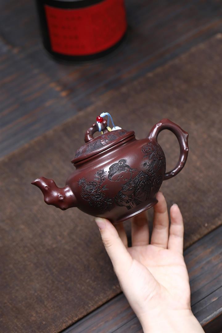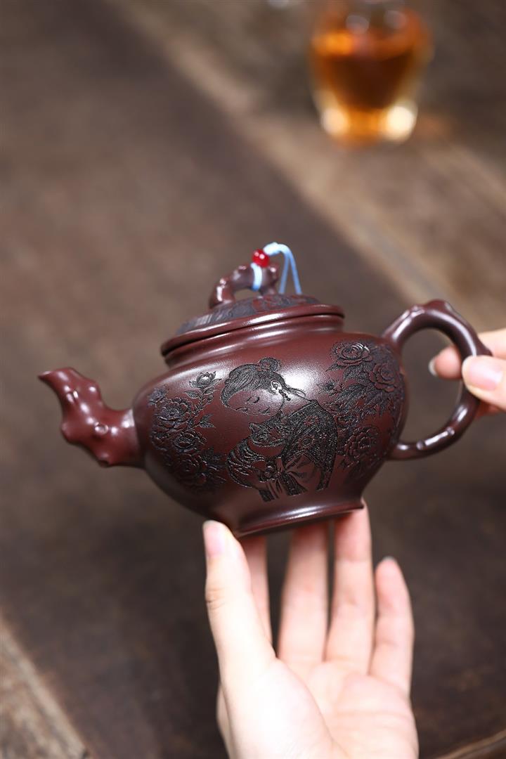 【作品介紹】此款壺形線條流暢,壺把,壺嘴,壺身壹氣呵成栩栩如生,是收藏把玩的好壺,泥料色澤古樸典雅,日久使用,漸露鋒芒,養成變化快,溫潤莊重,用其泡茶,使用的年代久,壺身就溫潤,泡出來的茶湯也就醇郁芳馨。