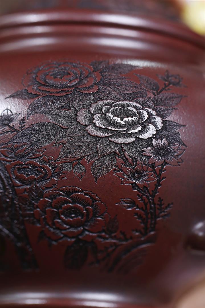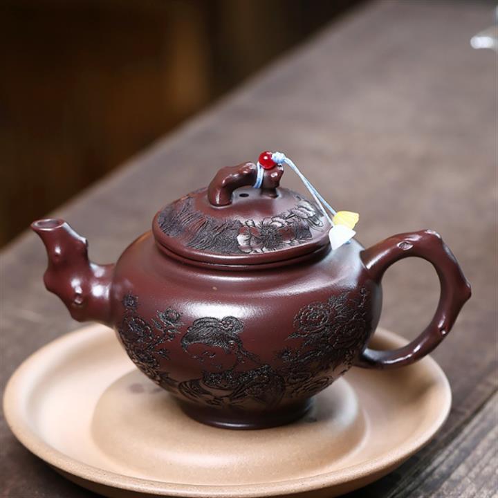 250cc原礦老紫泥浮雕祥龍戲珠茶壺POT7937