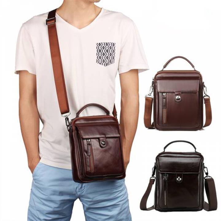 頭層牛皮立體口袋男士豎款肩背包單肩包